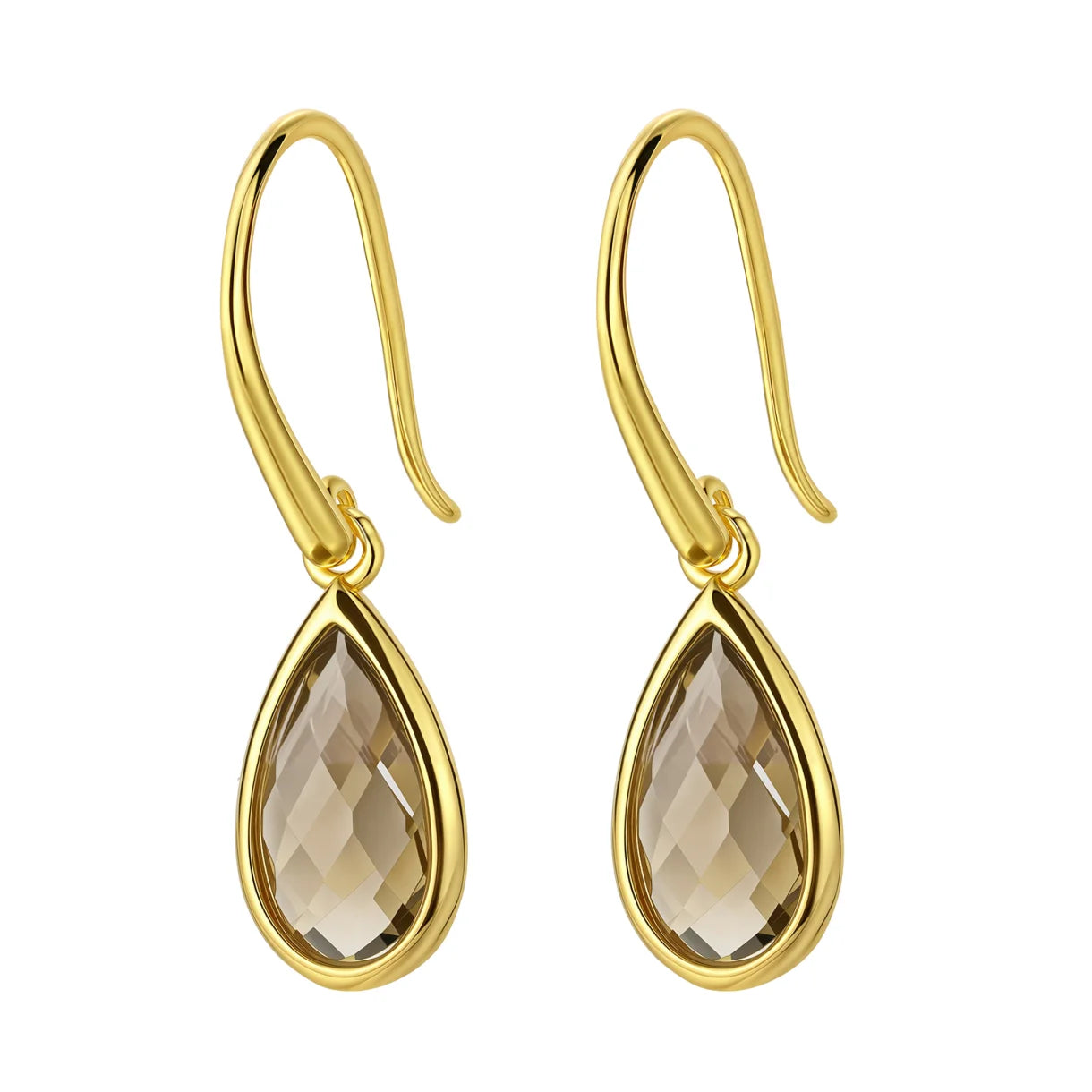 Flotte øreringe med store brune facetslebne smokeyquartz sten