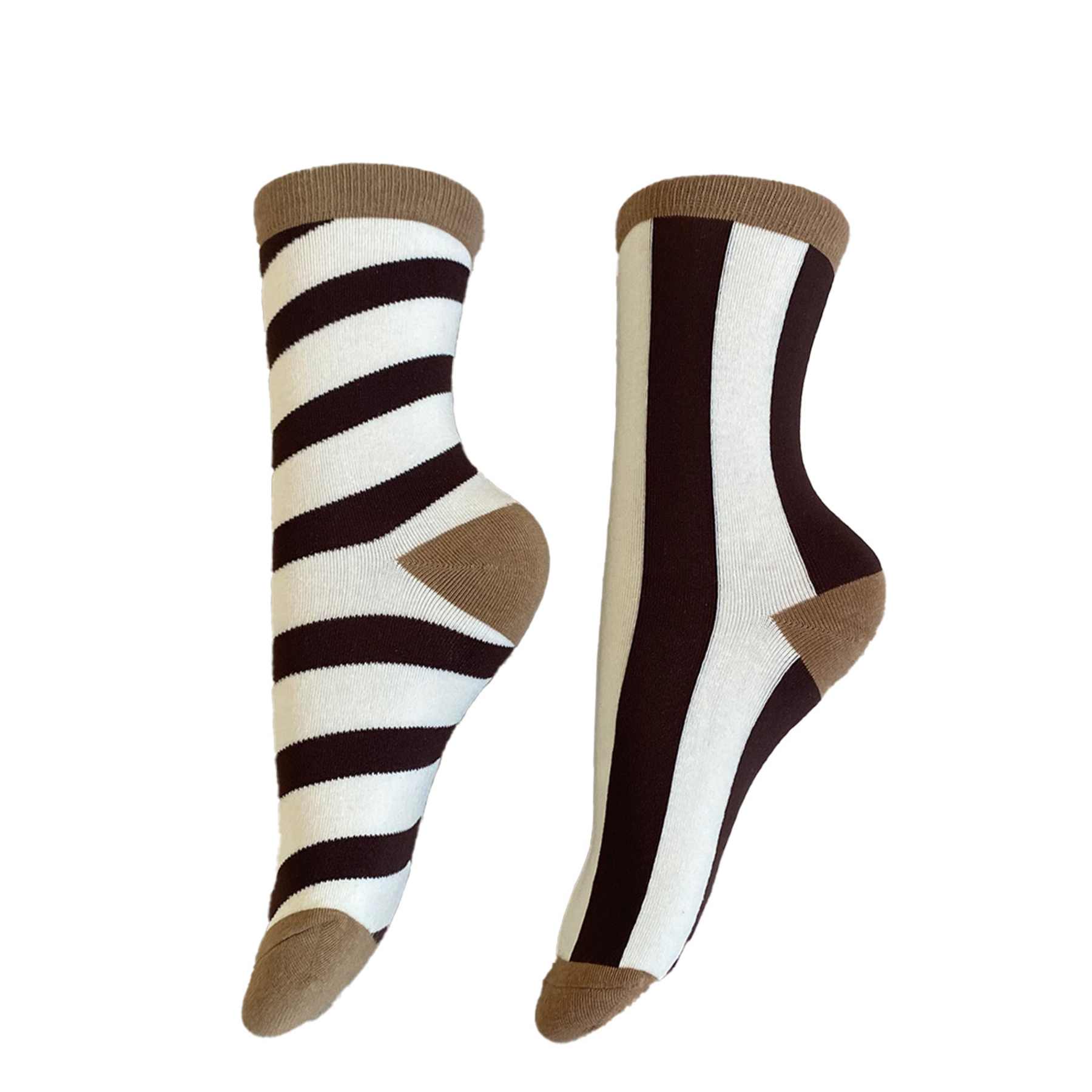 Strømper, Onesize, Assymetrisk Brun/Råhvid