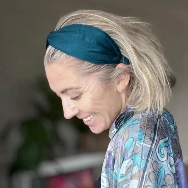 Den er lavet med en lille tynd hårbøjle inden i på ca 1 cm, som er beklædt med blødt formet skum, så hårbøjlen får en fin bredde. Derefter er hårbøjlen betrukket med stof