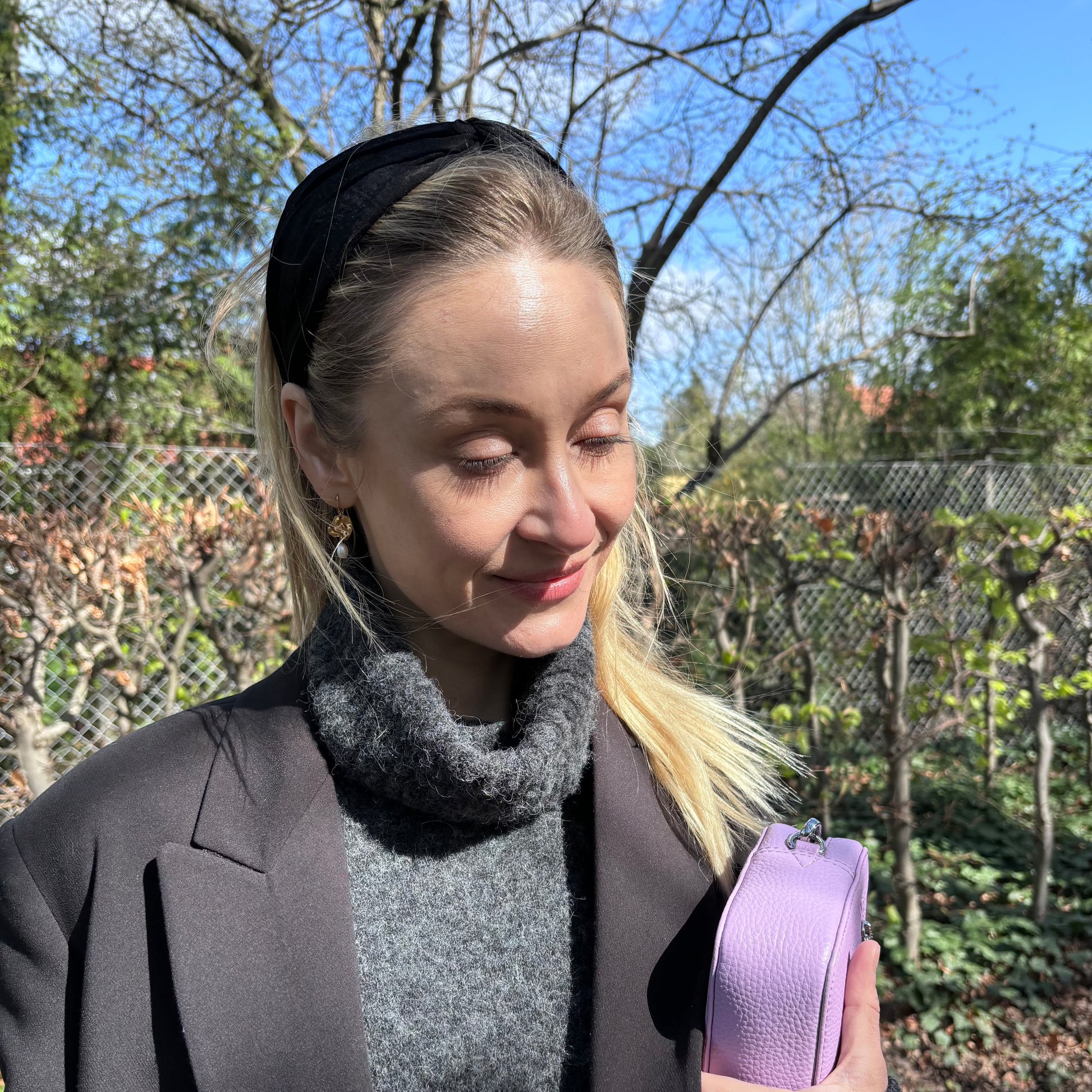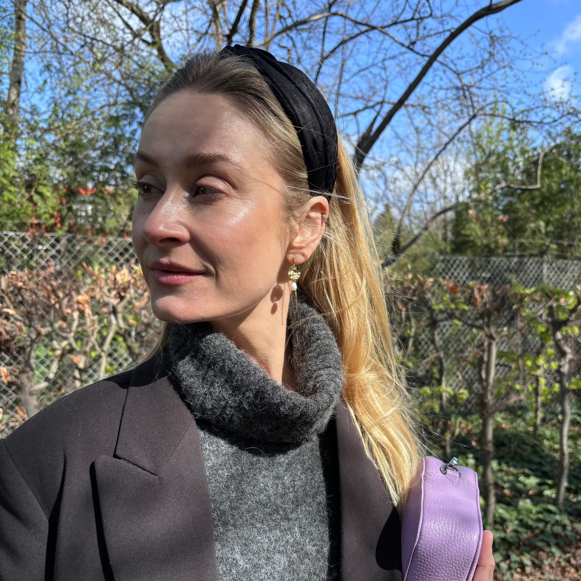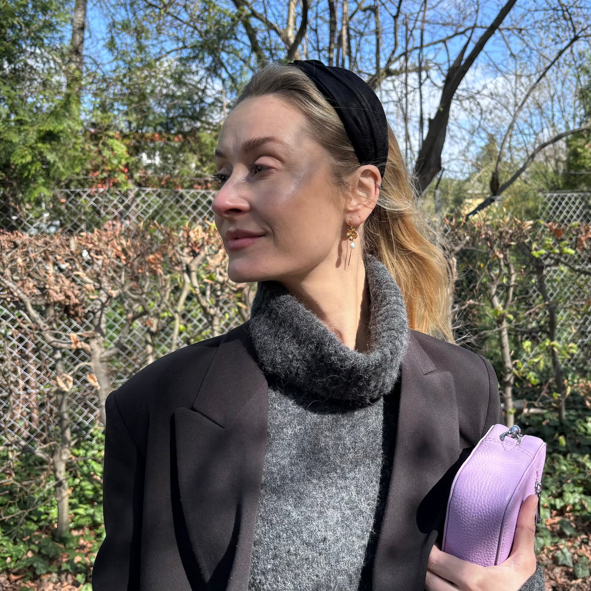 Den er lavet med en lille tynd hårbøjle inden i på ca 1 cm, som er beklædt med blødt formet skum, så hårbøjlen får en fin bredde. Derefter er hårbøjlen betrukket med stof